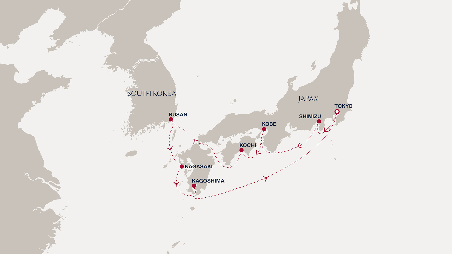 東京、清水、神戸、高知、釜山、長崎、鹿児島、東京