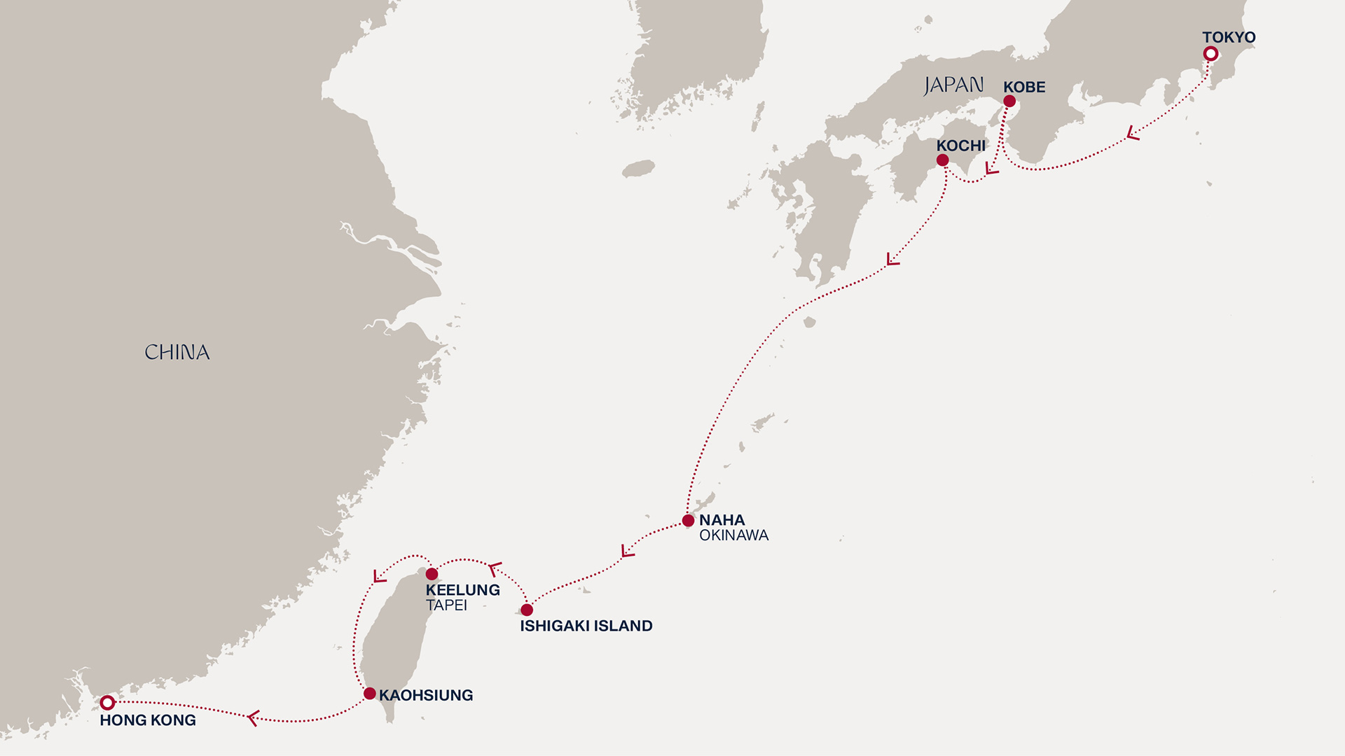 東京、神戸、高知、那覇、石垣島、基隆、高雄、香港(停泊)