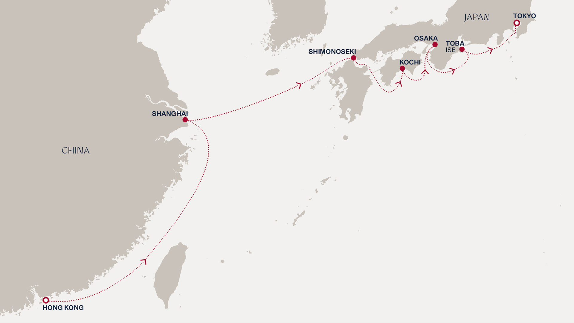 香港、上海(停泊)、下関、高知、大阪、鳥羽(伊勢)、東京