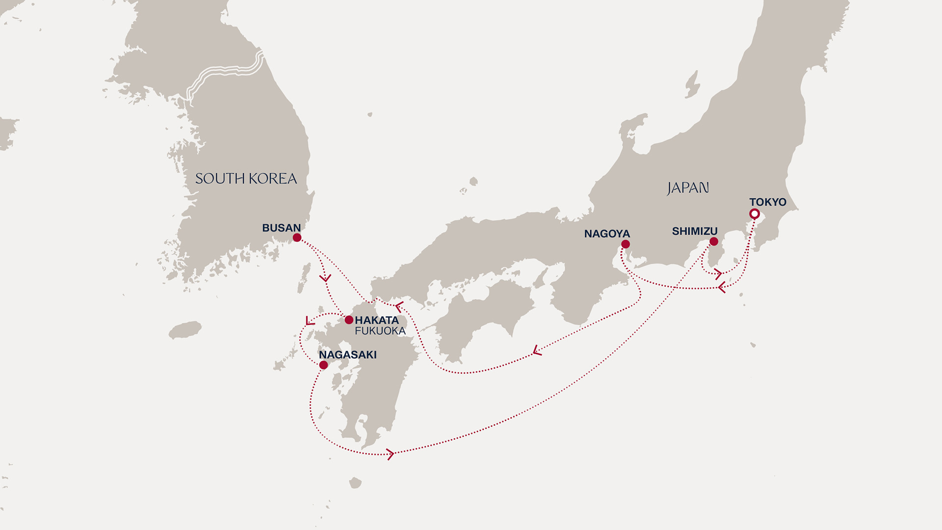 東京、名古屋、大阪(停泊)、広島、釜山、博多(福岡)、別府、東京