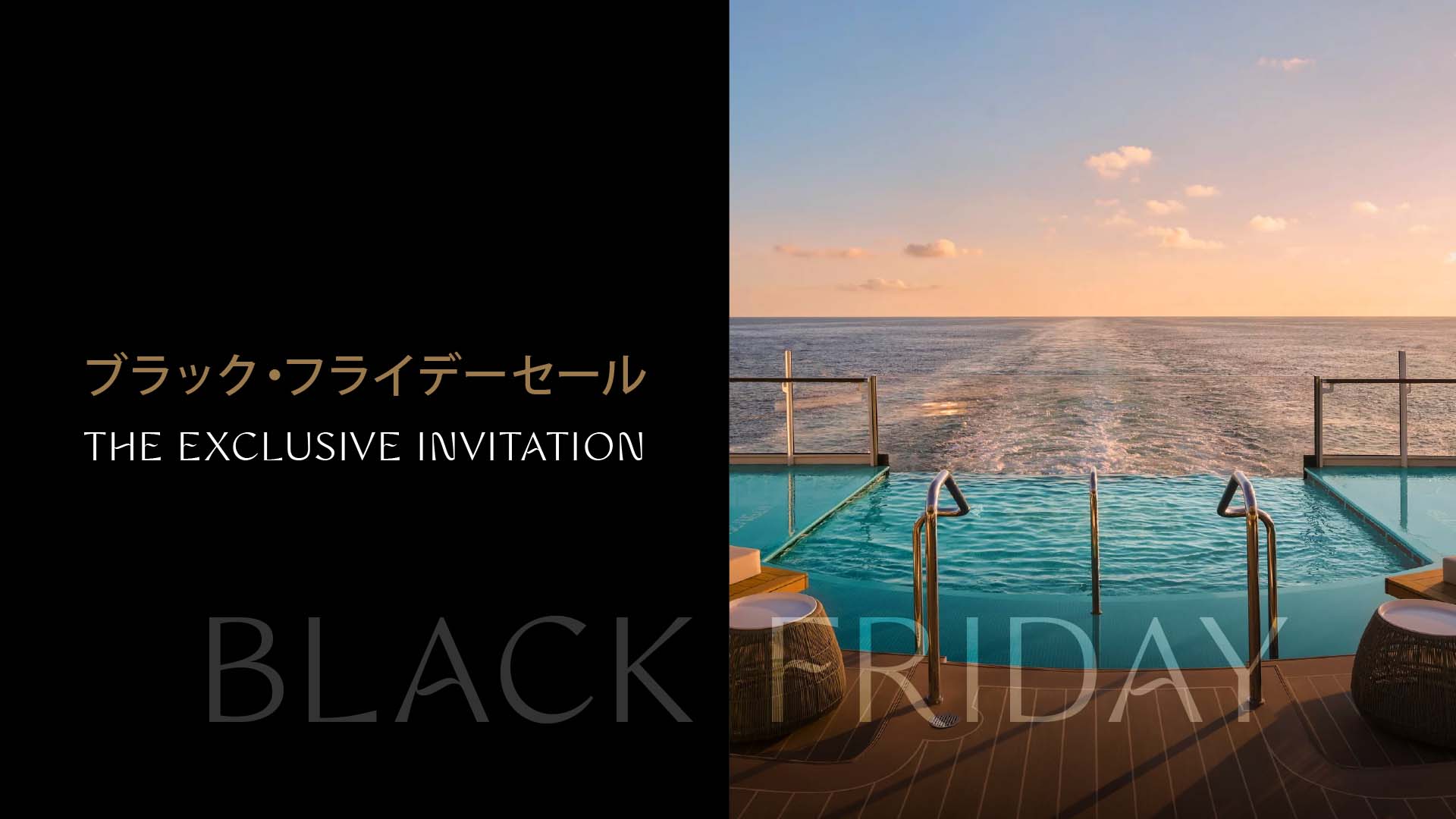 - 2025年ブラック・フライデーセール!11月3日からBLACK FRIDAY特別セールが開始しました。12月1日までの期間限定で、全カテゴリー最大40%、F1クルーズを除く全ての航路に適用されます。特別価格は先着順となります。ご希望の航路や気になっていたエリアをご検討中の方はお急ぎください。